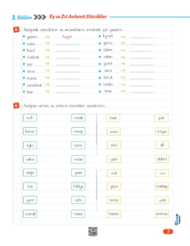 1. Bölüm Eş ve Zıt Anlamlı Sözcükler