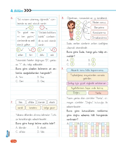 6. “Sol notasını çıkarmayı öğrendik.” cüm- 8. Öğretmen, romandaki en iyi karakterdi.