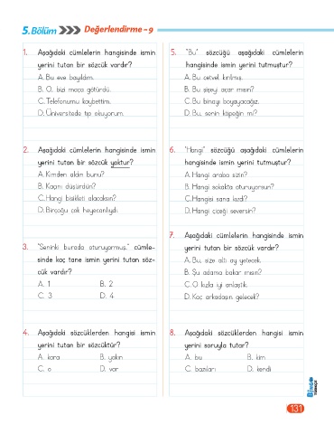1. Aşağıdaki cümlelerin hangisinde ismin 5. “Bu” sözcüğü aşağıdaki cümlelerin