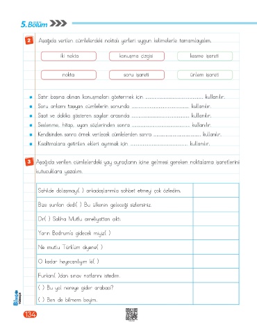 2 Aşağıda verilen cümlelerdeki noktalı yerleri uygun kelimelerle tamamlayalım.