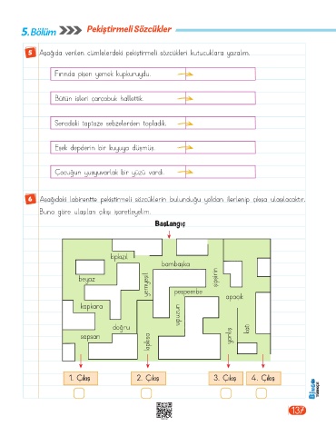 6 Aşağıdaki labirentte pekiştirmeli sözcüklerin bulunduğu yoldan ilerlenip çıkışa ulaşılacaktır.