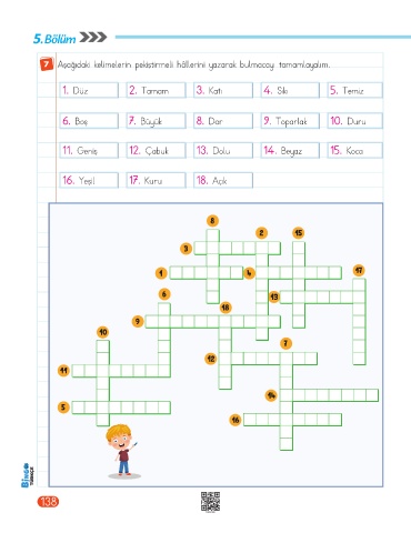 11. Geniş 12. Çabuk 13. Dolu 14. Beyaz 15. Koca