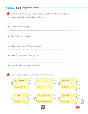 4 Aşağıdaki cümlelerde yanlış yazılan sayıları düzeltip cümleleri tekrar yazalım.