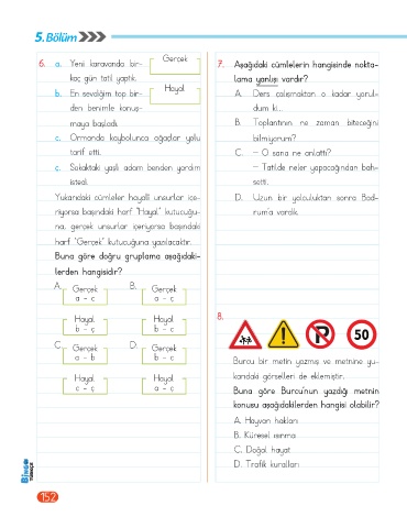 6. a. Yeni karavanda bir- Gerçek 7. Aşağıdaki cümlelerin hangisinde nokta-