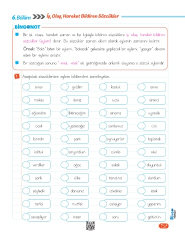 6. Bölüm İş, Oluş, H ar ek et B ildir e n Sö z cük le r
