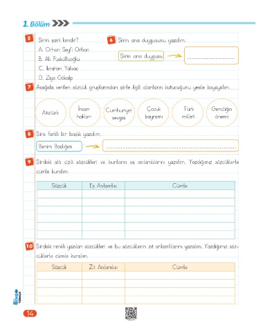 10 Şiirdeki renkli yazılan sözcükleri ve bu sözcüklerin zıt anlamlılarını yazalım. Yazdığımız söz-