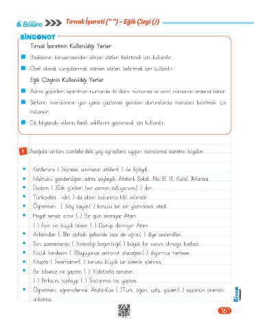1 Aşağıda verilen cümlelerdeki yay ayraçlara uygun noktalama işaretini koyalım.
