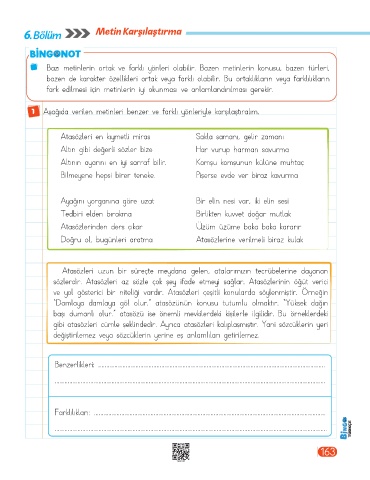 1 Aşağıda verilen metinleri benzer ve farklı yönleriyle karşılaştıralım.