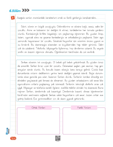 2 Aşağıda verilen metinlerdeki karakterleri ortak ve farklı yönleriyle karşılaştıralım.