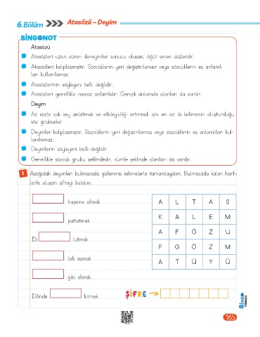 1 Aşağıdaki deyimleri bulmacada gizlenmiş kelimelerle tamamlayalım. Bulmacada kalan harf-
