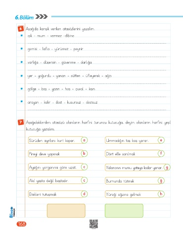 6 Aşağıda karışık verilen atasözlerini yazalım.