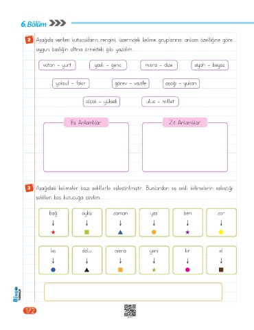 2 Aşağıda verilen kutucukların rengini, üzerindeki kelime gruplarının anlam özelliğine göre