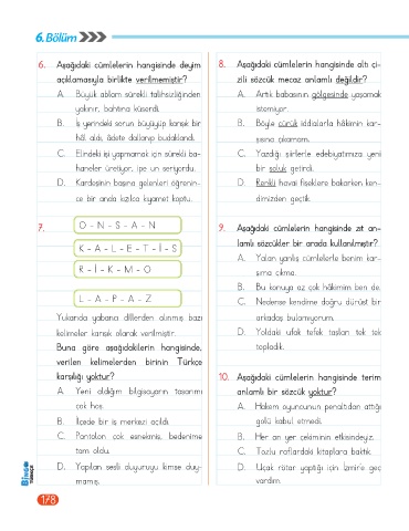 6. Aşağıdaki cümlelerin hangisinde deyim 8. Aşağıdaki cümlelerin hangisinde altı çi-