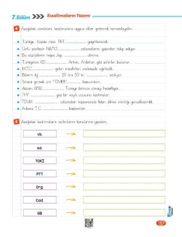 4 Aşağıdaki cümleleri, kısaltmalara uygun ekler getirerek tamamlayalım.