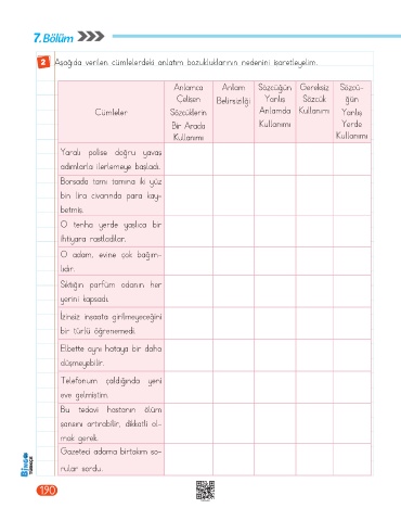 2 Aşağıda verilen cümlelerdeki anlatım bozukluklarının nedenini işaretleyelim.