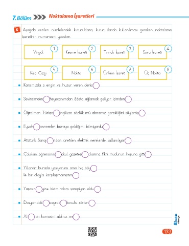 5 Aşağıda verilen cümlelerdeki kutucuklara, kutucuklarda kullanılması gereken noktalama