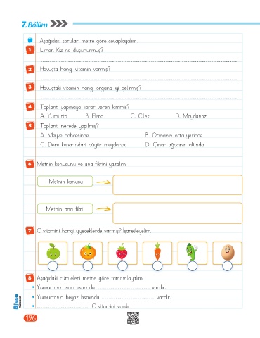 8 Aşağıdaki cümleleri metne göre tamamlayalım.