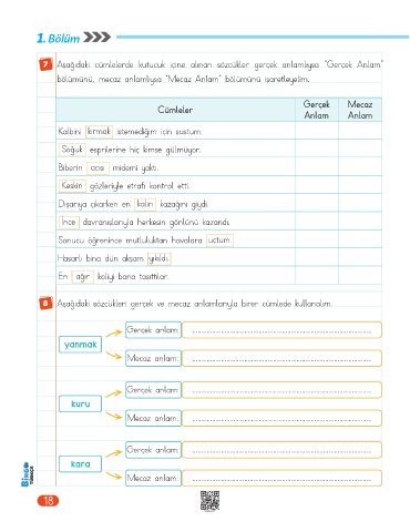 7 Aşağıdaki cümlelerde kutucuk içine alınan sözcükler gerçek anlamlıysa “Gerçek Anlam”