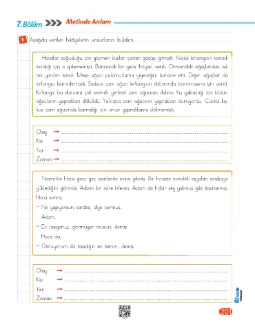 1 Aşağıda verilen hikâyelerin unsurlarını bulalım.