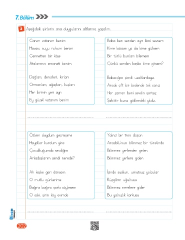 2 Aşağıdaki şiirlerin ana duygularını altlarına yazalım.