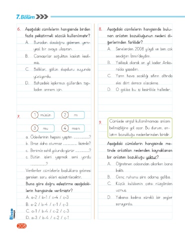 6. Aşağıdaki cümlelerin hangisinde birden 8. Aşağıdaki cümlelerin hangisinde bulu-