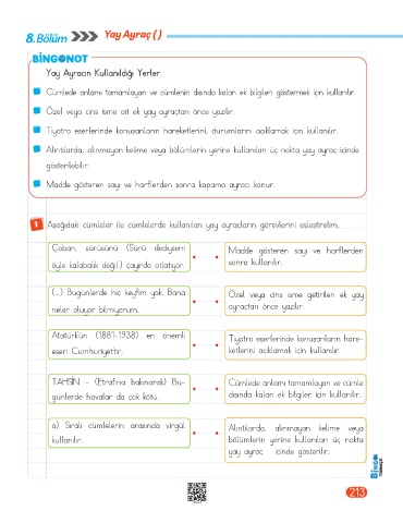 1 Aşağıdaki cümleler ile cümlelerde kullanılan yay ayraçların görevlerini eşleştirelim.