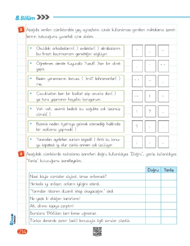 3 Aşağıdaki cümlelerde noktalama işaretleri doğru kullanıldıysa "Doğru”, yanlış kullanıldıysa