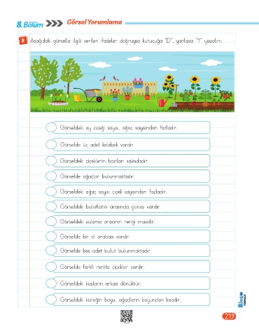5 Aşağıdaki görselle ilgili verilen ifadeler doğruysa kutucuğa "D”, yanlışsa "Y” yazalım.