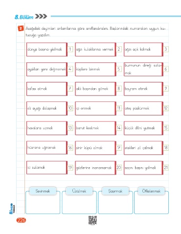 2 Aşağıdaki deyimleri anlamlarına göre sınıflandıralım. Başlarındaki numaraları uygun ku-