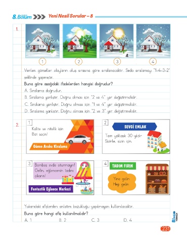 Verilen görseller olayların oluş sırasına göre sıralanacaktır. Seda sıralamayı "1-4-3-2”