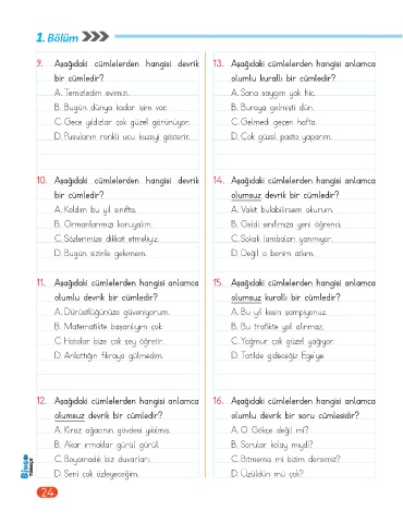 9. Aşağıdaki cümlelerden hangisi devrik 13. Aşağıdaki cümlelerden hangisi anlamca