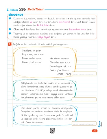 1 Aşağıda verilen metinlerin türlerini noktalı yerlere yazalım.