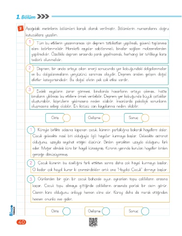 2 Aşağıdaki metinlerin bölümleri karışık olarak verilmiştir. Bölümlerin numaralarını doğru