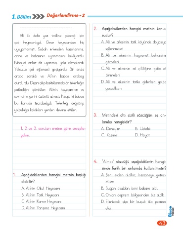 B. Ali’nin Tatil Heyecanı C. Onları deprem bölgesinden biz aldık.