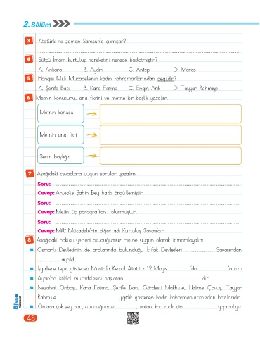7 Aşağıdaki cevaplara uygun sorular yazalım.