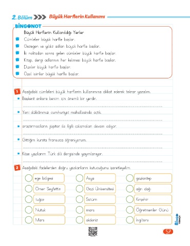 1 Aşağıdaki cümleleri büyük harflerin kullanımına dikkat ederek tekrar yazalım.
