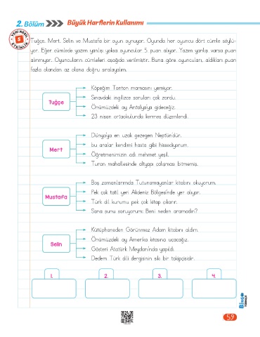 5 Tuğçe, Mert, Selin ve Mustafa bir oyun oynuyor. Oyunda her oyuncu dört cümle söylü-