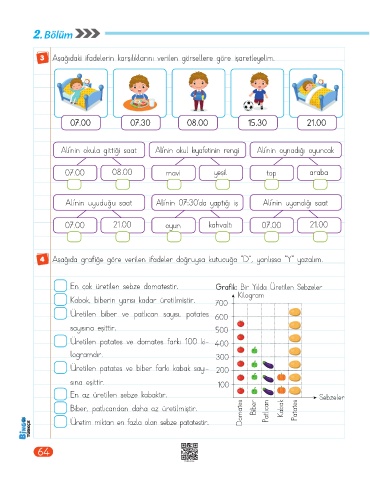 4 Aşağıda grafiğe göre verilen ifadeler doğruysa kutucuğa “D”, yanlışsa “Y” yazalım.