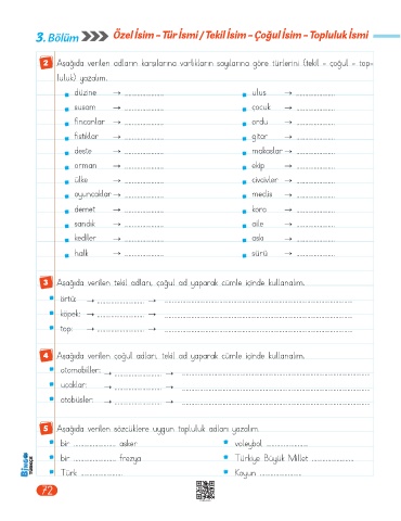 3 Aşağıda verilen tekil adları, çoğul ad yaparak cümle içinde kullanalım.