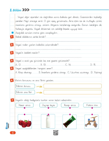 6 Metnin konusunu ve ana fikrini yazalım.