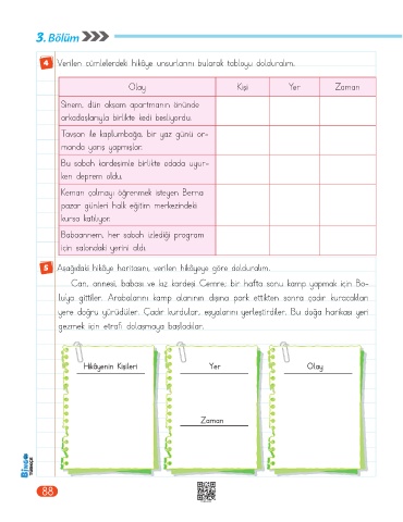 5 Aşağıdaki hikâye haritasını, verilen hikâyeye göre dolduralım.