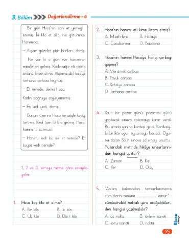istemiş. İki kilo et alıp eve götürmüş. A. Misafirlere B. Hoca’ya