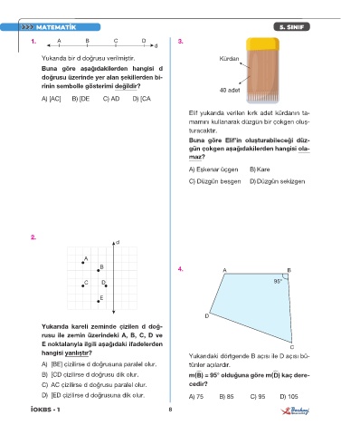 A) [BE] çizilirse d doğrusuna paralel olur. tünler açılardır.