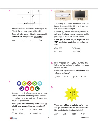 8. Her birinde eşit sayıda yolcu bulunan 9 uçak-