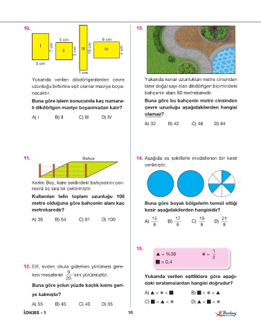metre olduğuna göre bahçenin alanı kaç Buna göre boyalı bölgelerin temsil ettiği