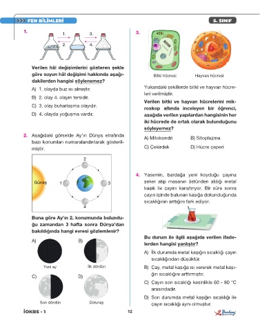 A) 1. olayda buz ısı almıştır. Yukarıdaki şekillerde bitki ve hayvan hücre-