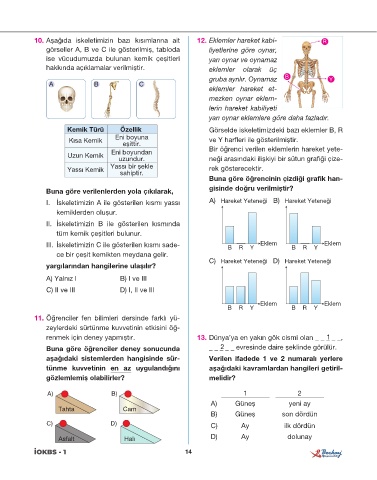 10. Aşağıda iskeletimizin bazı kısımlarına ait 12. Eklemler hareket kabi- R