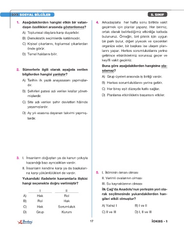 1. Aşağıdakilerden hangisi etkin bir vatan- 4. Arkadaşlarla her hafta sonu birlikte vakit