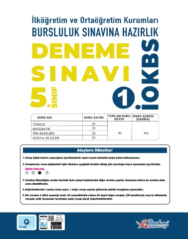 5. Her sorunun 4 (dört) seçeneği vardır. Bu seçeneklerden sadece bir tanesi doğru cevaptır. Çift işaretlenmiş veya iyi silinmemiş