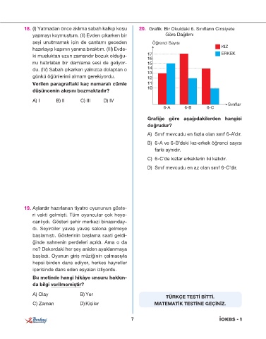 18. (I) Yatmadan önce aklıma sabah kalkıp koşu 20. Grafik: Bir Okuldaki 6. Sınıfların Cinsiyete